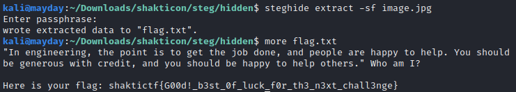 There’s an encouraging flag, shaktictf{Aw3s0m3_k33p_Go1n9!}