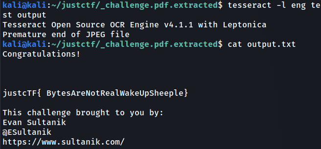Ok you know how lazy I am and how long that flag is. So in some cases I like to use tesseract to OCR the flag out of an image: