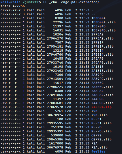 This PDF contains Ruby code, gives a small hint about file and readelf and shows that there will be a web server involved. Nothing else seems interesting here. I’m tempted to explore the file with binwalk, maybe foremost after that. Running binwalk shows a few parts and I notice a few zip files as well. Let’s extract all this with binwalk -e challenge.pdf and see what we find: